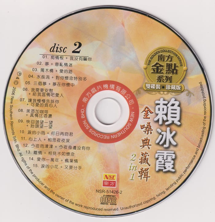 赖冰霞.2006 -《金嗓典藏辑2 IN 1》2CD南方金点[WAV+CUE] |