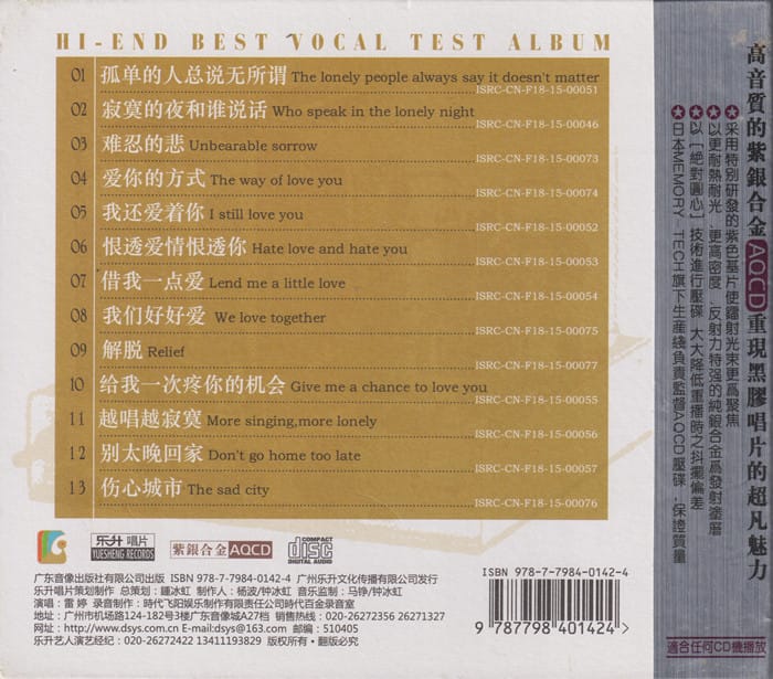 雷婷.2015 -《极品人声测试大碟》紫银合金AQCD[WAV+CUE] |